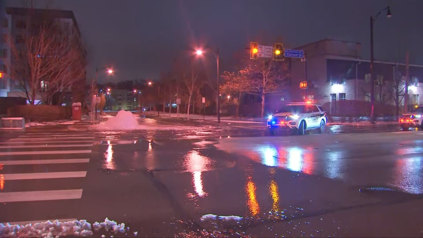 PITTSBURGH — A large water main break sent water flowing into a busy intersection on Pittsburgh’s South Side for hours.