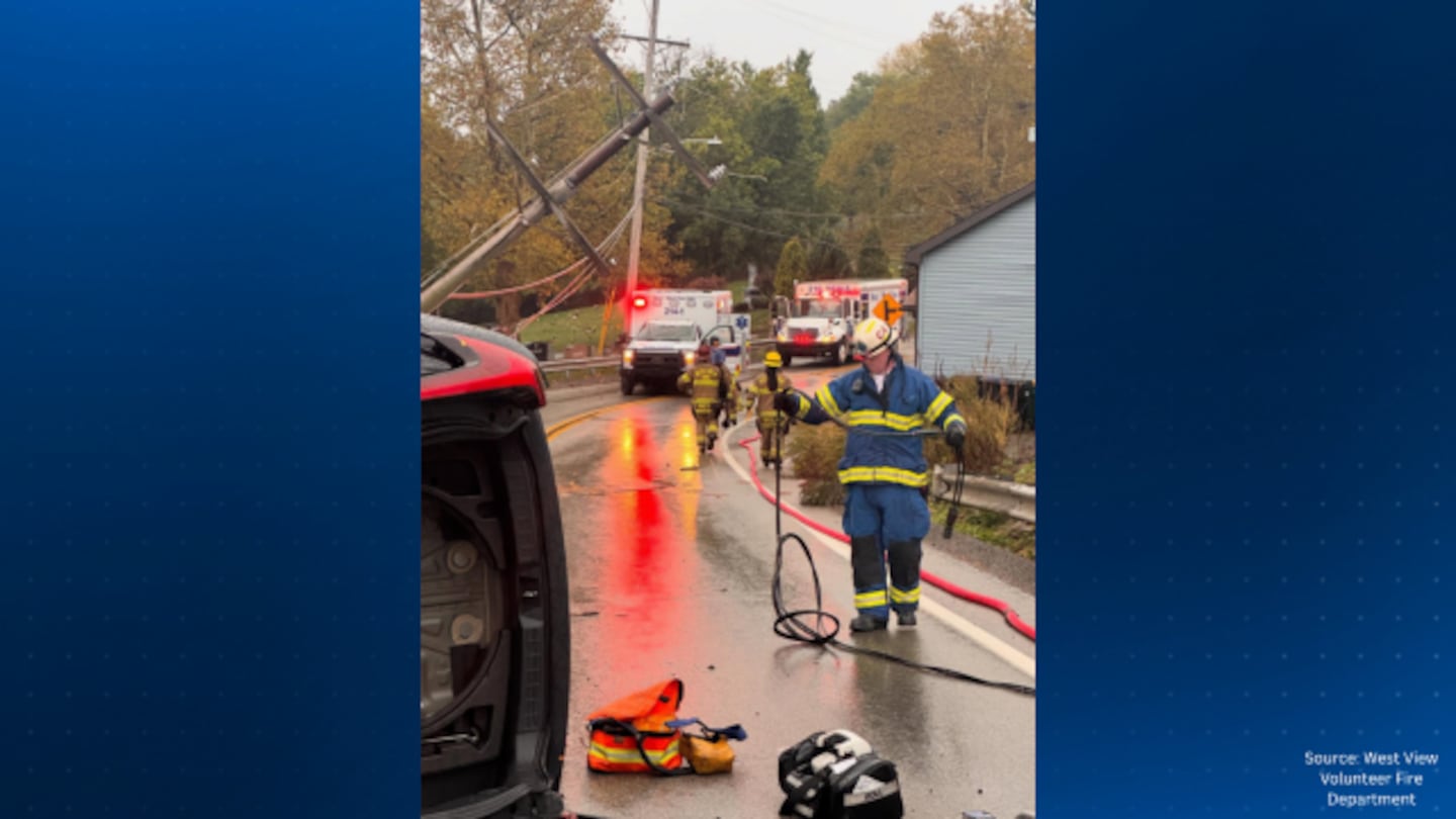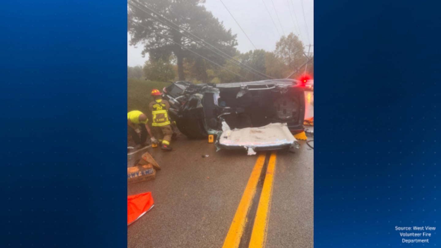 The West View Volunteer Fire Department shared photos of the crash scene. A vehicle had rolled onto its side and another vehicle sat alongside a hill nearby.