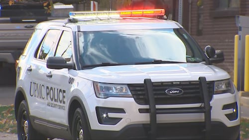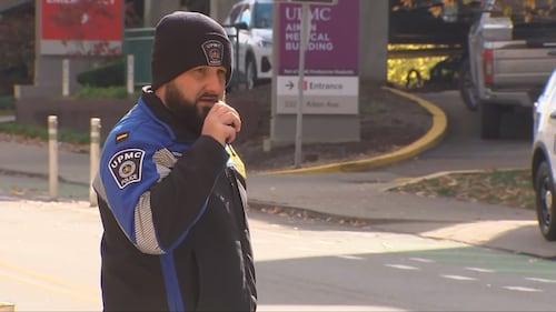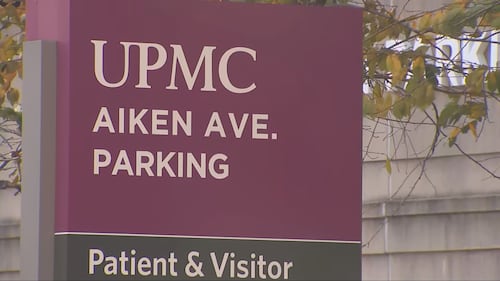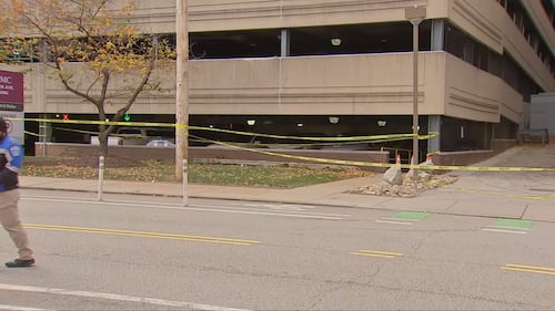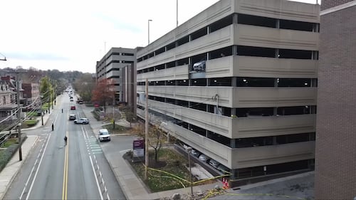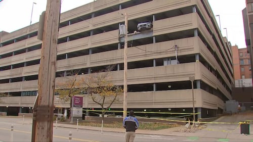 PHOTOS: Part of vehicle hangs out of parking garage at Pittsburgh hospital