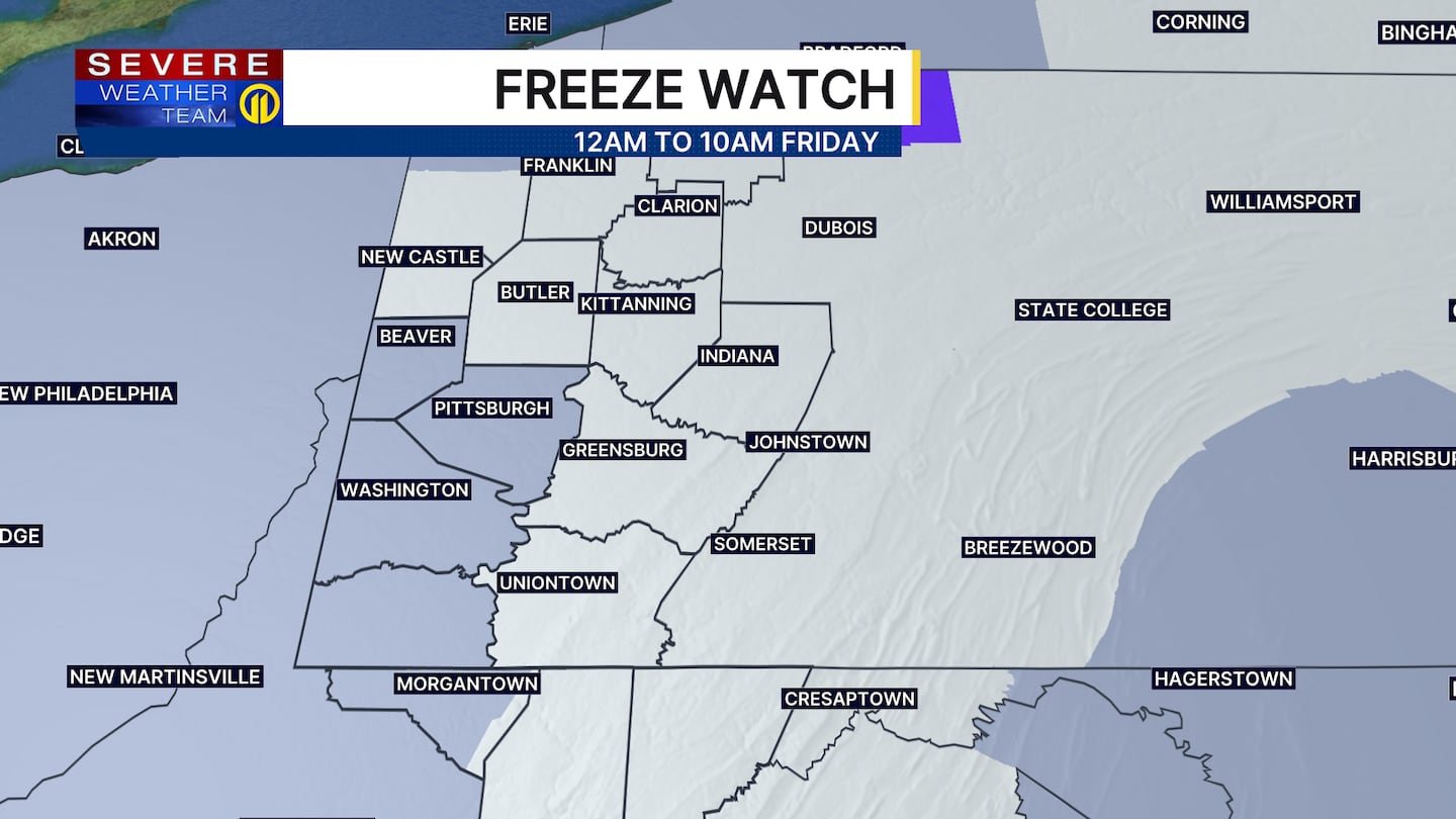High temperatures over the next several days will only be in the 60s. Overnight lows will be in the 30s, leading to concerns for a frost or freeze the next couple of nights north and east of Allegheny County.